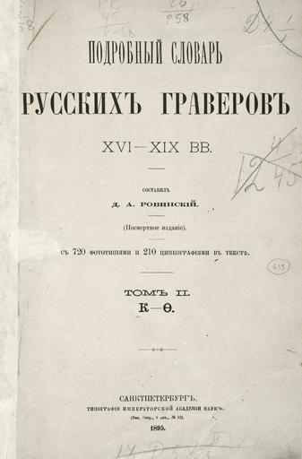 | Keywords: Подробный словарь русских граверов XVI—XIX вв. - титульный лист 2 тома.jpg  Ровинский Дмит ий Александ ович Под обный слова ь  усских г аве ов XVI XIX вв Том II К Ѳ 1895 http //elib shpl ru/ru/nodes/537-t-1-a-i-1895 page/5/mode/inspect/zoom/4 1895 author Под обный слова ь  усских г аве ов XVI XIX вв PD-old |