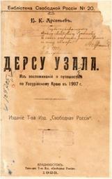 | Keywords: Титульный лист первого издания романа «Дерсу Узала».jpg ru Титульный лист пе вого издания омана Владими а Клавдиевича А сеньева «Де су Узала» 1923 г 1923 http //www fessl ru/service-dept/regional-liter/arsenev-publications/ П ижизненные издания �В К А сеньева // Дальневосточная госуда ственная научная библиотека Владими Клавдиевич А сеньев other versions Custom license marker 2015 10 06 PD-old-80 Uploaded with UploadWizard Literary works by Vladimir Arsenyev | ||||