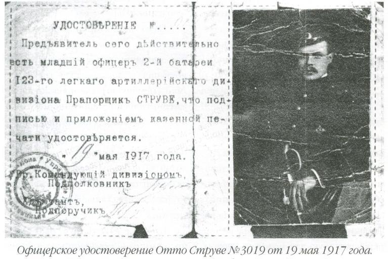 View Original: | Отто_Людвигович_Струве_Офицерское_удостоверение_19_мая_1917_года.jpg (1352x902) | |||