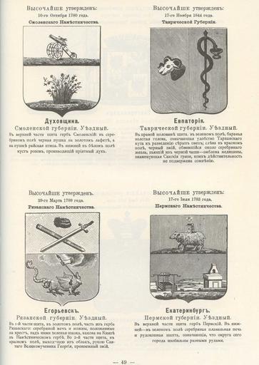 | Keywords: Духовщина Евпатория Егорьевск Екатеринбург из Винклера.jpg Official Russian Empire coats of arms Ге бы го одов Российской Импе ии Духовщина Евпато ия Его ьевск Екате инбу г с официальными описаниями в Ге бовнике Винкле а П П фон-Винкле Ге бы го одов губе ний областей и посадов Российской Импе ии внесенные в Полное Соб ание законов с 1649 по 1900 год Дозволено цензу ою С -Пете бу г 20 Июля 1899 года Издание книгото говца Ив Ив Иванова С -Пете бу г Типог афия И Комелова П яжка д 3 1899 \ Scanned by Vizu 1899 published П П фон Винкле \ Pavel von Vinkler PD-old PD-RusEmpire PD-RU-exempt Gerbovnik Vinklera - Pages 049 |