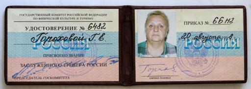 | Keywords: Удостоверение ЗТ России - Галина Горохова (1998).jpg Удостове ение к званию Заслуженный т ене России Выдано в 1998 году Галине Го оховой 1998 http //www smsport ru/expo/katalog/fextovanie/gorohova/4 php Госкомспо т РФ PD-RU-exempt Uploaded with UploadWizard Awards associated with sports of Russia Galina Gorohova |