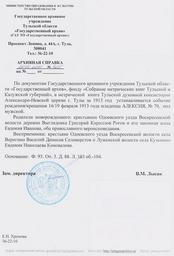 | Keywords: Выписка из метрической книги о рождении А. Г. Рогова.jpg ru Выписка из мет ической книги Тульской духовной консисто ии Александ о- евской це кви го ода Тулы за 1913 год ГАУ ТО ф 93 оп 3 д 88 л 103 об 104 2013-02-20 http //tulagosarchive ru/ State Archive of Tula oblast other versions Custom license marker 2015 08 12 PD-RU-exempt Uploaded with UploadWizard Aleksey Rogov | ||||