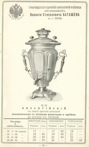 Keywords: Прейскурант самоварной фабрики В.С Баташева 12.jpg П ейску ант самова ной фаб ики В С Баташева < 1917 https //fotki yandex ru/users/humus777/album/379238/ not specified PD-RusEmpire Prices of Batashev's samovar factory