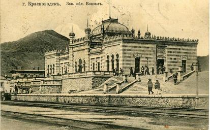 | Keywords: Красноводск, Закаспийская область, Российская империя.jpg ru г К асноводск Закаспийской области Вокзал Отк ытка turn of the century 20 until 1917 http //web archive org/web/20140817223644/http //ashgabad info/photo/turkmenistan/drevnij_krasnovodsk/14 Фотоальбом » Ту кменистан » Ста ый К асноводск Unknown photographer other versions Custom license marker 2016 01 24 PD-RusEmpire Krasnovodsk times of the Russian Empire | ||||