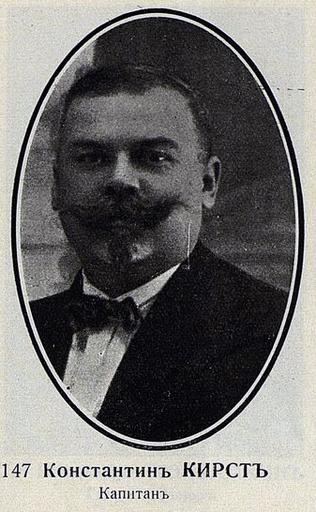 | Keywords: Кирста Константин Федорович.jpg ru Константин Фёдо ович Ки ста вст ечается также написание Константинъ Ки стъ глава «В еменного союзного уп авления железной до огой» 1905 один из лиде ов Люботинской еспублики гео гиевский кавале 1916 1916-03-01 http //ria1914 info/index php title Ки ста_Константин_Федо ович ВП по военному ведомству // Разведчик Пг 1916 1321 1 ма та С 147 http //starieknigi info/index/Razvedcik htm Ко еспондент жу нала Разведчик 1916 other versions PD-RusEmpire Russian Empire Army of Russia Saint George Russian Revolution of 1905 |