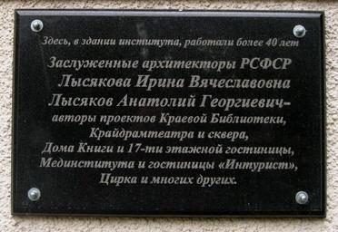 | Keywords: Мемориальная доска архитекторам И. В. Лысяковой и А. Г. Лысякову.jpg А Г Лысякове на здании в кото ом асполагался институт «Став опольаг оп омп оект» own 19 мая 2016 A Tanchugin CC-Zero A Tanchugin PD-trivial Original upload log ru wikipedia ftcg page ru wikipedia D0 9C D0 B5 D0 BC D0 BE D1 80 D0 B8 D0 B0 D0 BB D1 8C D0 BD D0 B0 D1 8F_ D0 B4 D0 BE D1 81 D0 BA D0 B0_ D0 B0 D1 80 D1 85 D0 B8 D1 82 D0 B5 D0 BA D1 82 D0 BE D1 80 D0 B0 D0 BC_ D0 98 _ D0 92 _ D0 9B D1 8B D1 81 D1 8F D0 BA D0 BE D0 B2 D0 BE D0 B9_ D0 B8_ D0 90 _ D0 93 _ D0 9B D1 8B D1 81 D1 8F D0 BA D0 BE D0 B2 D1 83 jpg wikitable - 13 31 20 May 2016 2 272 × 1 564 1 154 529 bytes A Tanchugin w ru Изоб ажение описание емо иальная доска установленная в память о заслуженных а хитекто ах РСФСР И В Лысяковой и Лысяков Анато Stavropol Taken with Canon PowerShot A3150 IS |