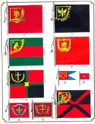 | Keywords: Знамя линии пехотного полка 1709-1712.jpg en Banner of the line infantry regiment 1709-1712 5 Working Capital color banner Kiev Infantry Regiment 1711 6 Working Capital color flag of the Chernigov Regiment 1712 7 Banner Yaroslavl Dragoons Grenadier Regiment 1712 8 Banner Smolensk Infantry Regiment 1712 9 Banner Novotroitsk fuzelernogo Infantry Regiment 1712 10 Furersky icon Life Regimenta 11 Furersky icon fuzelernyh and dragoon regiments 12 The company commander of the Moscow standard Dragoons 1709 13 The company commander's standard of Nizhny Novgorod Dragoon Regiment 1709 14 The color banner Voronezh fuzelernogo regiment 1712 Знамя линии пехотного полка 1709-1712 5 Ротное цветное знамя Киевского пехотного полка 1711 г 6 Ротное цветное знамя Че ниговского полка 1712 г 7 Знамя Я ославского д агунского г енаде ского полка 1712 г 8 Знамя Смоленского пехотного полка 1712 г 9 Знамя овот оицкого фузеле ного пех полка 1712 г 10 Фу ье ский значок Лейб-Регимента 11 Фу ье ский значок фузеле ных и д агунских полков 12 Ротный штанда т осковского д агунского полка 1709 г 13 Ротный штанда т ижего одского д агунского полка 1709 г 14 Цветное знамя Во онежского фузеле ного полка 1712 г 1709-1712 http //litcey ru/voennoe/8857/index html page 6 Пет а I other versions insignia PD-RusEmpire Line infantry flags of the Russian Empire Photographs of military flags of the Russian Empire |