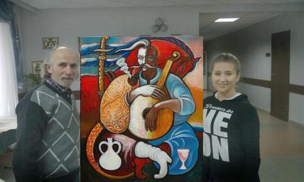 Keywords: Віктор Цапко та Меконян Арміне.jpg uk Зуст іч Вікто а Цапка з учнями Шишацької обласної гімназії-інте нату для обда ованих дітей 2015 2016-01-26 Фото зуст ічі учениці Шишацької обласної гімназії-інте нату для обда ованих дітей елконян А міне з художником Віто ом Цапком елконян А міне other versions Custom license marker 2016 01 26 Viktor Tsapko