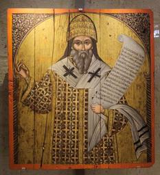 | Keywords: Άγιος Γρηγόριος ο Διάλογος 0633.jpg en Icon of Saint Gregory the Dialogist second half of the 17th century From Savvathiana monastery now is displayed at the Collection of Agia Aikaterini Heraklion 2016-08-18 14 24 58 own C messier other versions cc-zero 17th-century paintings of Gregorius I Magnus Gregorius I Magnus in icons Cretan School Collection of Agia Aikaterini Heraklion | ||||