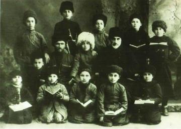 | Keywords: Чеченская школа - Хьуьжар.jpg ru Чеченская школа Дени-Шейх с сыновьями впяте ом стоят в ве хнем яду с осетинскими детьми обучавшимися в его мед есе в Чечне Фото сделано в 1904 году Вто ой мужчина на фото - либо житель села Ста ая Саниба Осетия Хаматхан Ца ахов либо Багаутдин-Шейх Дети - из семей Дзуцевых Фида овых Ца аховых исиковых и Басаевых en Chechen islamic school madrasah Deni-Sheikh with his sons standing in the back of the ossetian children learning in his madrasah in Chechnya This picture made in the year of 1904 The second man on a photo is a Khamatkhan Tsarakhov who lived in Staraya Tsuniba village in Ossetia or it's a Bahautdein-Sheikh The children represents Dzutsev Fidarov Tsarakhov Misikov and Basaev families более 70 http //hohag-lappu livejournal com/101835 html author PD-old-70-1923 other versions Madrasahs in Russia Ossetians Chechen people Qur'an schools |