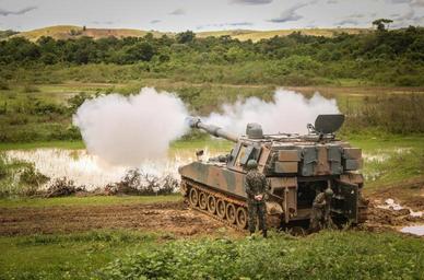 Keywords: outdoor Finalizando as ações no terreno por ocasião da Manobra Escolar 2016, as Armas, Quadros e Serviços realizam a demonstração de força. Flagrante da Artilharia realizando fogos com o M-109 de 155mm. foto: Sd Mattos - CEP/FDC Finalizando as ações no terreno por ocasião da Manobra Escolar 2016, as Armas, Quadros e Serviços realizam a demonstração de força. Flagrante da Artilharia realizando fogos com o M-109 de 155mm. foto: Sd Mattos - CEP/FDC