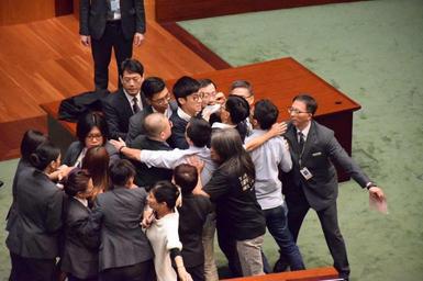| Keywords: 青年新政議員再闖立法會大會試圖宣誓不果.jpg zh-tw 年新政兩議員再闖立法 大 試 宣誓不 (美 之音湯惠芸/海彥拍 ) 2016-11-02 http //www voachinese com/a/news-hk-basic-law-interpretation-20161102/3575847 html 湯惠芸/海彥 other versions Custom license marker 2016 11 06 PD-USGov-VOA Hong Kong LegCo members' oath-taking controversy |