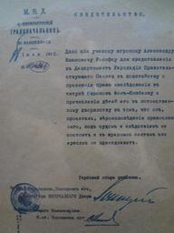 | Keywords: Обращение о наследовании титула Ролофс А.jpg en Central State Historical Archive of St Petersburg Fund 184 Inventory 3 Case 2970 Personal case student Rolofs Alexander abt inheritance of title 1912 The Office of the St Petersburg's town governor July 1912 ru ЦГИА СПб Фонд 184 Опись 3 Дело 2970 Личное дело студента Александ а Ролофс о наследовании титула 1912 Свидетельство выдано отделением Канцеля ии Сант-Пете бу гского г адоначальника за июль 1912 https //spbarchives ru/web/group/information_resources/-/archivestore/unit/2-118700 _archivestore_WAR_archivestoreportlet_searchquery D1 80 D0 BE D0 BB D0 BE D1 84 D1 81 _archivestore_WAR_archivestoreportlet_isOcrSearch false/Central State Historical Archive of St Petersburg The Office of the St Petersburg's town governor July 1912 official document 1912-07-01 Documents of the Russian Empire Archives in Russia Official documents Roloffs family PD-old-70-1923 |