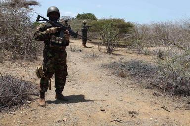 | Keywords: Kenyan soldiers, as part of the African Union Mission in Somalia, go on patrol in the recently captured town of Bula Gadud in the Lower Juba region of Somalia on October 15. Bula Gadud was liberated from the terrorist organization Al Shabab by African Union forces on October 6. AMISOM Photo / Barut Mohamed Kenyan soldiers, as part of the African Union Mission in Somalia, go on patrol in the recently captured town of Bula Gadud in the Lower Juba region of Somalia on October 15. Bula Gadud was liberated from the terrorist organization Al Shabab by African Union forces on October 6. AMISOM Photo / Barut Mohamed |