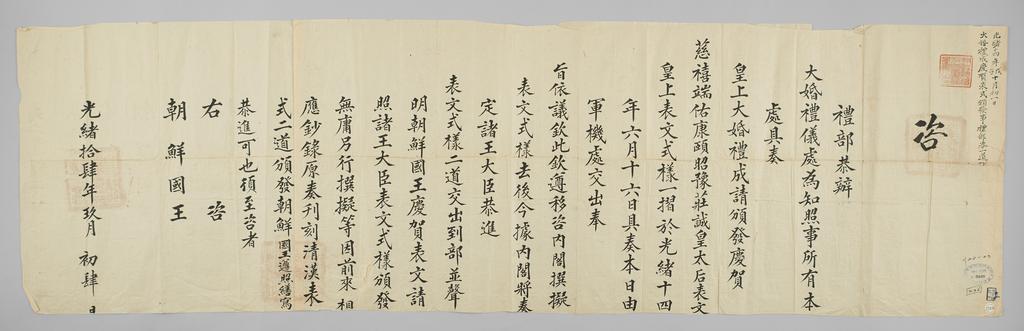 | Keywords: 조선-청 외교문서(자문) 018.jpg ko 皇上大婚禮成에 慶 表樣式頒發事를 禮部 터 移咨10 1日接 2016-07-15 http //www nl go kr/nl/search/SearchDetail nl category_code ct service KOLIS vdkvgwkey 1129982 colltype DAN_OLD place_code_info 172 place_name_info EB 94 94 EC A7 80 ED 84 B8 EC 97 B4 EB 9E 8C EC 8B A4 manage_code MA shape_code B refLoc null category dan srchFlag Y h_kwd E5 8F A4 E6 9C 9D51- EB 8B A428-23 lic_yn N mat_code RB 국립중앙도 조선국왕 수급 청국예 급 other versions PD-Art Books from National Library of Korea Books from Korea 1888 in Relations of the Joseon Dynasty and the Qing Dynasty |