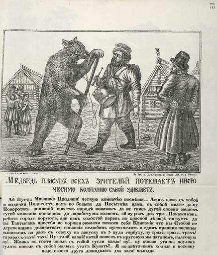 | Keywords: Медведь плясун.jpg  ru Лубок « едведь плясун» en Dancing bear amuses the audience Russia 1870 http //marinni dreamwidth org/549103 html style site thread 12386543 Author other versions Custom license marker 2016 04 07 PD-art-100 Lubok Bear guiding rite in Russia |