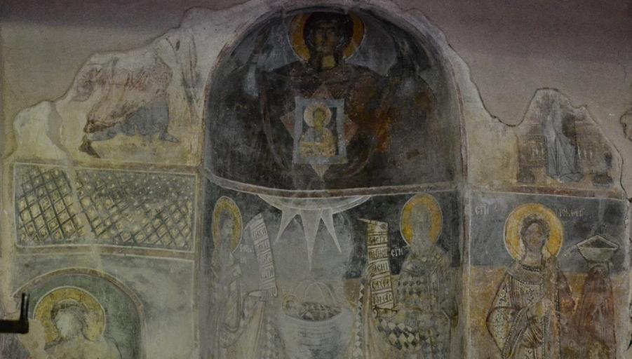 | Keywords: Олтарни фрески - Св. Ѓорѓи Ѓуземелшки.jpg mk Ф еска во олта ниот дел на ц квата Св Ѓо ѓи во светиниколско Ѓуземелци century 16 https //scontent-ams3-1 xx fbcdn net/hphotos-xft1/t31 0-8/12967554_10204810738748885_7617167657841616306_o jpg author other versions PD-Art Anonymous-EU PD-Macedonia St George's Church Ǵuzemelci |