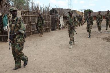 | Keywords: outdoor Kenyan soldiers, as part of the African Union Mission in Somalia, get ready to go out on patrol in the recently captured town of Bula Gadud in the Lower Juba region of Somalia on October 15. Bula Gadud was liberated from the terrorist organization Al Shabab by African Union forces on October 6. AMISOM Photo / Barut Mohamed Kenyan soldiers, as part of the African Union Mission in Somalia, get ready to go out on patrol in the recently captured town of Bula Gadud in the Lower Juba region of Somalia on October 15. Bula Gadud was liberated from the terrorist organization Al Shabab by African Union forces on October 6. AMISOM Photo / Barut Mohamed |