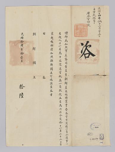 | Keywords: 조선-청 외교문서(자문) 046.jpg ko 鮮 差來領時憲書뢰官方漢德等 行 11 22日自京起程事를 禮部에 移咨12 25日復命 2016-07-18 http //www nl go kr/nl/search/SearchDetail nl category_code ct service KOLIS vdkvgwkey 1129969 colltype DAN_OLD place_code_info 172 place_name_info EB 94 94 EC A7 80 ED 84 B8 EC 97 B4 EB 9E 8C EC 8B A4 manage_code MA shape_code B refLoc null category srchFlag Y h_kwd E5 8F A4 E6 9C 9D51- EB 8B A428-57 lic_yn N mat_code RB 국립중앙도 조선국왕 수급 청국예 급 other versions PD-Art Books from National Library of Korea Books from Korea 1888 in Relations of the Joseon Dynasty and the Qing Dynasty |