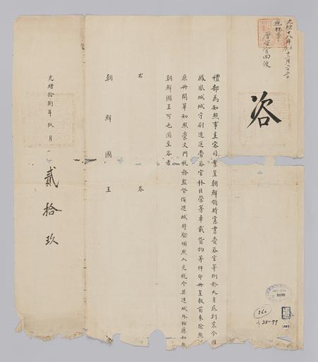 | Keywords: 조선-청 외교문서(자문) 064.jpg 고종 29년 1892 9월 29 에 청국 예 에 조선국왕에게 보내 온 문 조선에 파견 헌 재자 박신영 臣榮 등 싣고 온 재화에 해 면세 다고 알리는 내용 다 2016-07-18 http //www nl go kr/nl/search/SearchDetail nl category_code ct service KOLIS vdkvgwkey 1130284 colltype DAN_OLD place_code_info 172 place_name_info EB 94 94 EC A7 80 ED 84 B8 EC 97 B4 EB 9E 8C EC 8B A4 manage_code MA shape_code B refLoc null category srchFlag Y h_kwd E5 8F A4 E6 9C 9D51- EB 8B A428-77 lic_yn N mat_code RB 국립중앙도 조선국왕 수급 청국예 급 other versions PD-Art Books from National Library of Korea Books from Korea 1892 in Relations of the Joseon Dynasty and the Qing Dynasty |