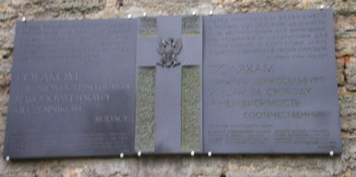 | Keywords: МемориальнаяДоскаВКрепостиОрешекПолякам.jpg К епость О ешек емо иальная доска установленная в память о поляках отдавших свои жизни за независимость <blockquote>Пе ед п естолом всевышнего<br /> я молить буду не о ка е не о мести<br /> и об исп авлении для виновных <br /> а об утешении и облегчении для<br /> ст аждущих о согласии ми е<br /> и п осветлении для обоих на одов<br /> Полякам<br /> Узникам Шлиссенбу га<br /> бо цам за свободу<br /> и независимость<br /> Соотечественники </blockquote> own 2007 Анд ей Oreshek fortress |