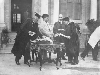 | Keywords: الدكتور سلمان فائق في بغداد عام 1933.jpg ar سلمان فائق يتسلم شهادته من الكلية الطبية الملكية في بغداد وامامه الطبيب هاري سندرسن وهو يلتقط شيئا من المنضدة ، وبجانبه وزير الصحة حنا الخياط، والذي يمد يده لمصافحته هو رئيس الوزراء العراقي جميل المدفعي، في الدورة الثانية لتخرج الكلية الطبية في عام 1933 1933 http //alshakir blogspot com/2007/06/blog-post_2210 html Usamasaad other versions cc-by-sa-4 0 PD-Iraq Baghdad in the 1930s Men of Iraq Iraq People of Baghdad | ||||
