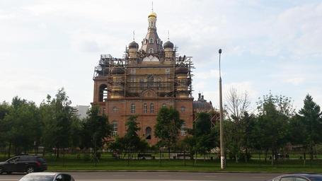| Keywords: Строительство храма в честь Сретения Господня (июнь 2016).jpg ru Ст оящийся х ам в честь С етения Господня Располагается на Са анской улице 2016-06-20 18 20 56 own Александ отин other versions cc-zero Church of the presentation of Jesus at the Temple in Zhulebino Church construction in Moscow |