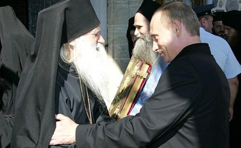 | Keywords: Владимир Путин и архимандрит Иеремия (Алехин).jpg ru C игуменом усского монасты я Святого великомученика и целителя Пантелеймона а химанд итом Ие емией 8 9 сентяб я 2005 года http //kremlin ru/events/president/trips/45563/photos/25259 Фото п есс-службы п езидента России other versions Custom license marker 2016 05 08 PD-old Vladimir Putin with religious leaders | ||||