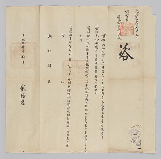 | Keywords: 조선-청 외교문서(자문) 174.jpg 고종 22년 1885 10월 23 에 청국 예 에 조선국왕에게 보내 온 문 조선에 파견 재자 등 마 사신 행에게 81냥 하사 다고 알리는 내용 다 2016-07-19 http //www nl go kr/nl/search/SearchDetail nl category_code ct service KOLIS vdkvgwkey 1129974 colltype DAN_OLD place_code_info 172 place_name_info EB 94 94 EC A7 80 ED 84 B8 EC 97 B4 EB 9E 8C EC 8B A4 manage_code MA shape_code B refLoc null category srchFlag Y h_kwd E5 8F A4 E6 9C 9D51- EB 8B A428-247 lic_yn N mat_code RB 국립중앙도 조선국왕 청국예 other versions PD-Art Books from National Library of Korea Books from Korea 1888 in Relations of the Joseon Dynasty and the Qing Dynasty |