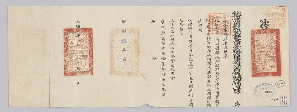 | Keywords: 조선-청 외교문서(자문) 177.jpg 고종 21년 1884 8월 25 에 판조선각구교섭통상사무 總辦 鮮各口交涉 商事務 진 陳 조선 정 에 보내 온 문 조선 정 에 25 터 '總辦 鮮各口交涉 商事務 防' 통상사무 련 1과 顆 를 용 開用 행하 고 알리는 내용 다 2016-07-19 http //www nl go kr/nl/search/SearchDetail nl category_code ct service KOLIS vdkvgwkey 1130126 colltype DAN_OLD place_code_info 172 place_name_info EB 94 94 EC A7 80 ED 84 B8 EC 97 B4 EB 9E 8C EC 8B A4 manage_code MA shape_code B refLoc null category srchFlag Y h_kwd E5 8F A4 E6 9C 9D51- EB 8B A428-250 lic_yn N mat_code RB 국립중앙도 청 판조선각국교섭통상사무진 조선 정 other versions PD-Art Books from National Library of Korea Books from Korea 1884 in Relations of the Joseon Dynasty and the Qing Dynasty |