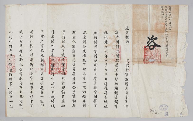 | Keywords: 조선-청 외교문서(자문) 180.jpg 고종 28년 1891 에 청국 예 에 조선국왕에게 보내 온 문 미 죽 채 견 조선 무명 無名 남자 신 연공사신과 동반해 온 원역 員役 에게 만들어 장 歸葬 하 고 에 해 알리는 내용 다 문 뒷 분 결 되어 자세 전모를 파악하기 어렵다 2016-07-19 http //www nl go kr/nl/search/SearchDetail nl category_code ct service KOLIS vdkvgwkey 1130256 colltype DAN_OLD place_code_info 172 place_name_info EB 94 94 EC A7 80 ED 84 B8 EC 97 B4 EB 9E 8C EC 8B A4 manage_code MA shape_code B refLoc null category srchFlag Y h_kwd E5 8F A4 E6 9C 9D51- EB 8B A428-253 lic_yn N mat_code RB 국립중앙도 조선국왕 청국예 other versions PD-Art Books from National Library of Korea Books from Korea 1891 in Relations of the Joseon Dynasty and the Qing Dynasty |