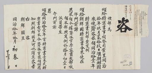 | Keywords: 조선-청 외교문서(자문) 199.jpg 고종 8년 1871 10월 3 에 청국 예 에 조선국왕에게 보내 온 문 조선에 파견 재자 용숙에게 헌력 時憲曆 반급 頒給 하 알리는 내용 다 2016-07-19 http //www nl go kr/nl/search/SearchDetail nl category_code ct service KOLIS vdkvgwkey 1130374 colltype DAN_OLD place_code_info 172 place_name_info EB 94 94 EC A7 80 ED 84 B8 EC 97 B4 EB 9E 8C EC 8B A4 manage_code MA shape_code B refLoc null category srchFlag Y h_kwd E5 8F A4 E6 9C 9D51- EB 8B A428-276 lic_yn N mat_code RB 국립중앙도 조선국왕 청국예 other versions PD-Art Books from National Library of Korea Books from Korea 1871 in Relations of the Joseon Dynasty and the Qing Dynasty |