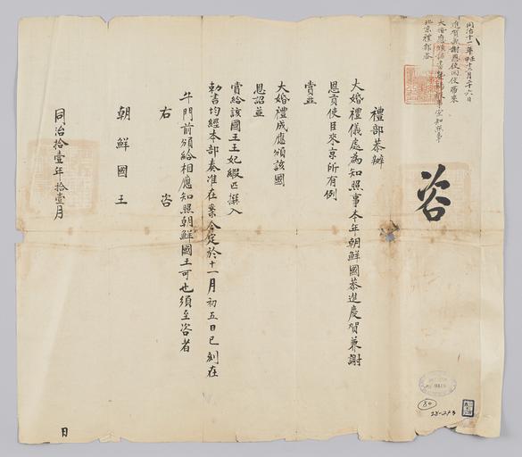 | Keywords: 조선-청 외교문서(자문) 215.jpg 고종 9년 1872 11월에 청국 예 에 조선국왕에게 보내 온 문 청 황 혼 건 조선에 온 진하 겸 사 사에게 상 내림 물론 조 詔書 비단 등 물품 物品 내린다고 알리는 내용 다 2016-07-19 http //www nl go kr/nl/search/SearchDetail nl category_code ct service KOLIS vdkvgwkey 1130362 colltype DAN_OLD place_code_info 172 place_name_info EB 94 94 EC A7 80 ED 84 B8 EC 97 B4 EB 9E 8C EC 8B A4 manage_code MA shape_code B refLoc null category srchFlag Y h_kwd E5 8F A4 E6 9C 9D51- EB 8B A428-293 lic_yn N mat_code RB 국립중앙도 조선국왕 청국예 other versions PD-Art Books from National Library of Korea Books from Korea 1872 in Relations of the Joseon Dynasty and the Qing Dynasty |