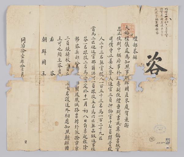| Keywords: 조선-청 외교문서(자문) 212.jpg 고종 9년 1872 11월에 청국 예 에 조선국왕에게 보내 온 문 조선에 파견 진하 겸 사 사 정사 박 수 등 행 달 8 에 북경에 다고 알리는 내용 다 2016-07-19 http //www nl go kr/nl/search/SearchDetail nl category_code ct service KOLIS vdkvgwkey 1130364 colltype DAN_OLD place_code_info 172 place_name_info EB 94 94 EC A7 80 ED 84 B8 EC 97 B4 EB 9E 8C EC 8B A4 manage_code MA shape_code B refLoc null category srchFlag Y h_kwd E5 8F A4 E6 9C 9D51- EB 8B A428-290 lic_yn N mat_code RB 국립중앙도 조선국왕 청국예 other versions PD-Art Books from National Library of Korea Books from Korea 1872 in Relations of the Joseon Dynasty and the Qing Dynasty |