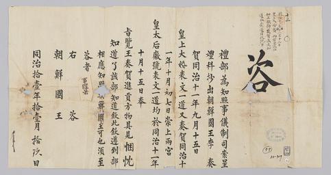 | Keywords: 조선-청 외교문서(자문) 229.jpg 고종 9년 1872 11월 19 에 청국 예 에 조선국왕에게 보내 온 문 황상 혼 양궁 황 후 상 호 加上徽號 를 축하하는 조선국왕 문과 공물 貢物 받아 황 에게 올렸 알리는 문 다 2016-07-19 http //www nl go kr/nl/search/SearchDetail nl category_code ct service KOLIS vdkvgwkey 1130365 colltype DAN_OLD place_code_info 172 place_name_info EB 94 94 EC A7 80 ED 84 B8 EC 97 B4 EB 9E 8C EC 8B A4 manage_code MA shape_code B refLoc null category srchFlag Y h_kwd E5 8F A4 E6 9C 9D51- EB 8B A428-307 lic_yn N mat_code RB 국립중앙도 조선국왕 청국예 other versions PD-Art Books from National Library of Korea Books from Korea 1872 in Relations of the Joseon Dynasty and the Qing Dynasty |