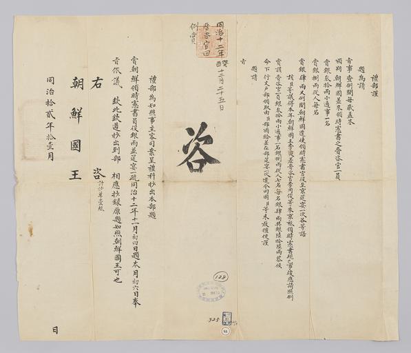 | Keywords: 조선-청 외교문서(자문) 247.jpg 고종 10년 1873 11월에 청국 예 에 조선국왕에게 보내 온 문 조선에 온 헌 재자 용 등 사신 행에게 포상하 알리는 내용 다 2016-07-19 http //www nl go kr/nl/search/SearchDetail nl category_code ct service KOLIS vdkvgwkey 43335719 colltype DAN_OLD place_code_info 172 place_name_info EB 94 94 EC A7 80 ED 84 B8 EC 97 B4 EB 9E 8C EC 8B A4 manage_code MA shape_code B refLoc null category srchFlag Y h_kwd E5 8F A4 E6 9C 9D51- EB 8B A428-325 lic_yn N mat_code RB 국립중앙도 청국 예 급 other versions PD-Art Books from National Library of Korea Books from Korea 1873 in Relations of the Joseon Dynasty and the Qing Dynasty |