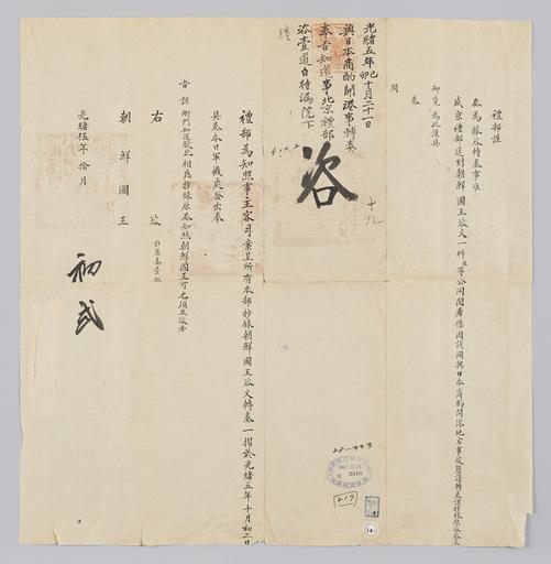 | Keywords: 조선-청 외교문서(자문) 255.jpg 고종 16년 1879 10월 2 에 청국 예 에 조선국왕에게 보내 온 문 조선에 본과 항 開港 하는 문 를 협상하고 있는 사안에 해 황 에게 아뢰었 알리는 내용 다 2016-07-19 http //www nl go kr/nl/search/SearchDetail nl category_code ct service KOLIS vdkvgwkey 1130087 colltype DAN_OLD place_code_info 172 place_name_info EB 94 94 EC A7 80 ED 84 B8 EC 97 B4 EB 9E 8C EC 8B A4 manage_code MA shape_code B refLoc null category srchFlag Y h_kwd E5 8F A4 E6 9C 9D51- EB 8B A428-333 lic_yn N mat_code RB 국립중앙도 조선국왕 청국예 other versions PD-Art Books from National Library of Korea Books from Korea 1879 in Relations of the Joseon Dynasty and the Qing Dynasty |