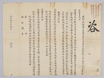| Keywords: 조선-청 외교문서(자문) 290.jpg 고종 9년 1872 10월 16 에 청국 예 에 조선국왕에게 보내 온 문 두 황 후 를 받들어 황 정 親政 길기 吉 를 내년 1월 26 잡았다고 알리는 내용 다 2016-07-19 http //www nl go kr/nl/search/SearchDetail nl category_code ct service KOLIS vdkvgwkey 1130372 colltype DAN_OLD place_code_info 172 place_name_info EB 94 94 EC A7 80 ED 84 B8 EC 97 B4 EB 9E 8C EC 8B A4 manage_code MA shape_code B refLoc null category srchFlag Y h_kwd E5 8F A4 E6 9C 9D51- EB 8B A428-372 lic_yn N mat_code RB 국립중앙도 조선국왕 청국예 other versions PD-Art Books from National Library of Korea Books from Korea 1872 in Relations of the Joseon Dynasty and the Qing Dynasty |