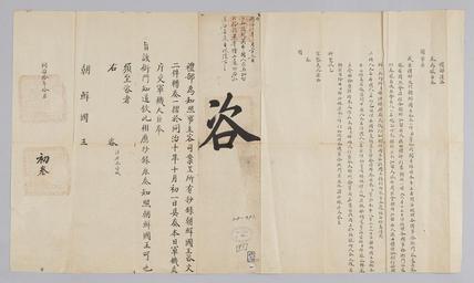 | Keywords: 조선-청 외교문서(자문) 307.jpg 고종 8년 1871 10월 3 에 청국 예 에 조선국왕에게 보내 온 문 황해도 백령진에 류해 온 중국 9명과 영 英 ·포국 布 人 2명 큰 배 잘 돌려 보냈다는 조선국왕 자문 2건 받았다고 알리는 내용 다 2016-07-19 http //www nl go kr/nl/search/SearchDetail nl category_code ct service KOLIS vdkvgwkey 1130391 colltype DAN_OLD place_code_info 172 place_name_info EB 94 94 EC A7 80 ED 84 B8 EC 97 B4 EB 9E 8C EC 8B A4 manage_code MA shape_code B refLoc null category srchFlag Y h_kwd E5 8F A4 E6 9C 9D51- EB 8B A428-391 lic_yn N mat_code RB 국림중앙도 조선국왕 청국예 other versions PD-Art Books from National Library of Korea Books from Korea 1871 in Relations of the Joseon Dynasty and the Qing Dynasty |
