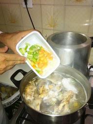 Keywords: Acrescentar o mirepoix e o sache d'épices no fundo claro de ave