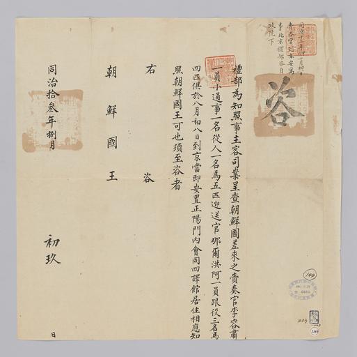 | Keywords: 조선-청 외교문서(자문) 328.jpg 고종 11년 1874 8월 9 에 청국 예 에 조선국왕에게 보내 온 문 조 에 보낸 재자 용숙 容肅 등 행 8월 8 에 북경에 도착하여 회동 사역 에 머물고 있 알리는 내용 다 2016-07-19 http //www nl go kr/nl/search/SearchDetail nl category_code ct service KOLIS vdkvgwkey 43440747 colltype DAN_OLD place_code_info 172 place_name_info EB 94 94 EC A7 80 ED 84 B8 EC 97 B4 EB 9E 8C EC 8B A4 manage_code MA shape_code B refLoc null category srchFlag Y h_kwd E5 8F A4 E6 9C 9D51- EB 8B A428-423 lic_yn N mat_code RB 국립중앙도 청국 예 급 other versions PD-Art Books from National Library of Korea Books from Korea 1874 in Relations of the Joseon Dynasty and the Qing Dynasty |