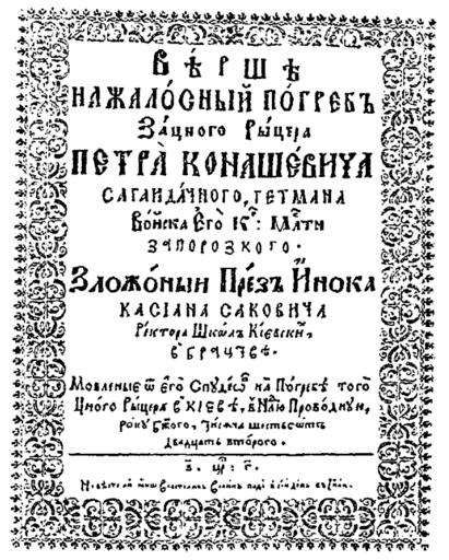 | Keywords: Вѣршѣ на жалосный погребъ зацного рыцера Петра Конашевича Сагайдачного – 1622.png  uk Касіян Сакович «Ві ші на жалосний пог еб зацного  ице а Пет а Конашевича Сагайдачного» 1622 1622-01-01 https //books google com ua/books id WGTsBQAAQBAJ pg PA168 lpg PA168 dq Евфония+1633 source bl ots us9QuARplu sig bOFbQBle-fGdVRmv1gZQ75q3k88 hl en sa X ved 0ahUKEwi1iNCRooLOAhWkDZoKHUkyDWwQ6AEILzAD v onepage q f false Либ ович С Ф Исто ия книги в России 2013 Cassian Sakowicz other versions PD-Art 1622 books single pages Books published by Kiev Pechersk Lavra publishing house Ruthenian language |