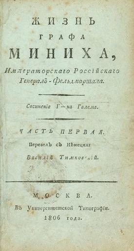 | Keywords: Галем Г. Жизнь графа Миниха. (1806). — Тит. лист.jpg  https //ru bidspirit com/portal/ /catalog/auction/55278f92e4b0c2c600f47db2/ Image page PD-RusEmpire Books from Russia 1806 Books published in Moscow Title pages of books from Russia Title pages uploaded by Steven Pavlov from various sources |