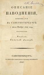 | View Original: | Аллер С. Описание наводнения, бывшего в Санкт-Петербурге 7 числа ноября 1824 года. (1826). — Тит. лист.jpg (1225x2067) | |||