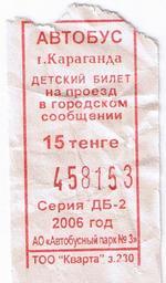 Keywords: Детский билет.jpg en Karaganda Kazakhstan city bus ticket 2006 ru Автобусный билет г Ка аганда 2006 г own Wassily Transport in Karagandy Bus tickets of Kazakhstan Images by Wassily