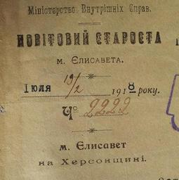 View Original:Фрагмент бланка Повітовий староста Єлисавета 2.07.1918.jpg (1485x1491)