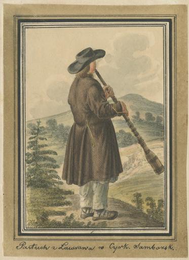 | Keywords: Самбір. Пастух з трембітою.jpg uk Pastuch z Ławrania w Cyrk Samborsk Mężczyzna dmący w trombitę w czarnym płaskim kapeluszu brązowej sukmanie i białych portkach stojący profilem na szczycie góry 2016-04-24 http //www europeana eu/portal/search q Kajetan+Kielisi C5 84ski Kajetan Wincenty Kielisiński other versions PD-old-70-1923 Ukrainian costume collection by Kajetan Kielisiński | ||||