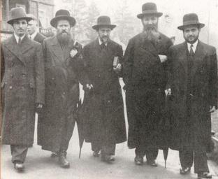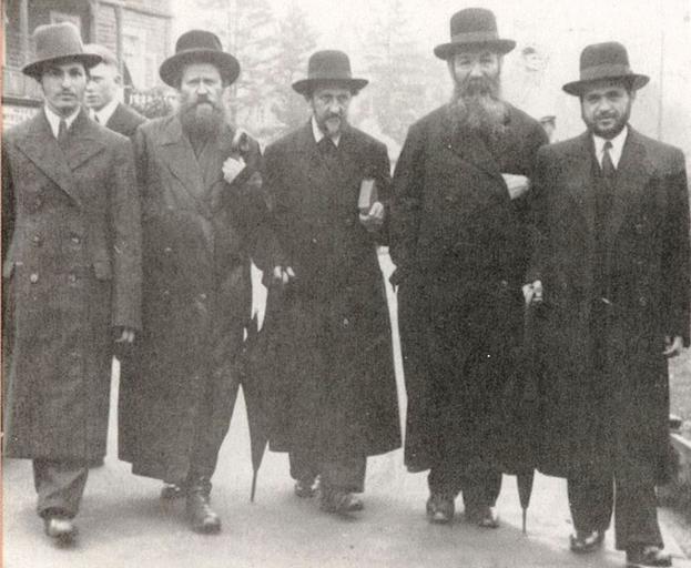 Keywords: הגאון מבריסק עם רבי מנחם זמבא.jpg he ע הגאון רבי מנח זמבא < 1943-04-24 דודי פרידמן PD-anon-70-EU Yitzchok Zev Soloveitchik Menachem Ziemba