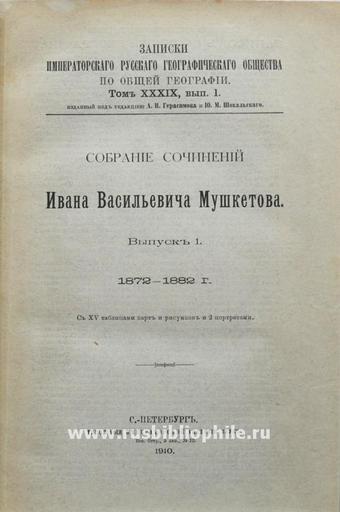 | Keywords: Мушкетов И.В. Собрание сочинений. Вып 1. (1910). — Тит. лист.jpg  PAGENAME http //www rusbibliophile ru/Book/Mushketov_I_V__Sobranie_sochinen 1910  ушкетов И В PD-RusEmpire Books from Russia 1910 Title pages of books from Russia Title pages uploaded by Steven Pavlov from various sources |