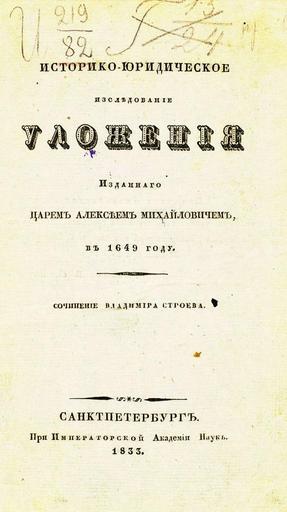 | Keywords: Строев Владимир Михайлович.jpg  ru Ст оев Владими  ихайлович Исто ико-ю идическое исследование Уложения изданного ца ем Алексеем  ихайловичем в 1649 году 2016-05-29 http //dlib rsl ru/01003542090 РГБ other versions PD-old-70-1923 Books published in Saint Petersburg Books from Russia 1833 Title pages of books from Russia |